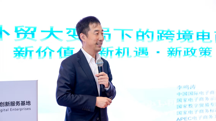 在主题演讲环节,中国国际电子商务中心电商首席专家李鸣涛围绕“跨境电商新价值”展开深度剖析,为与会企业指明出海新方向。他强调,在外贸格局深度重塑的背景下,跨境电商不仅为企业降低了国际市场参与门槛,更在渠道拓展、品牌建设、供应链优化等方面提供系统性支撑,跨境电商正推动中国企业从“卖全球”迈向“品牌全球”,构建起高效、柔性且具有韧性的国际贸易新通道。