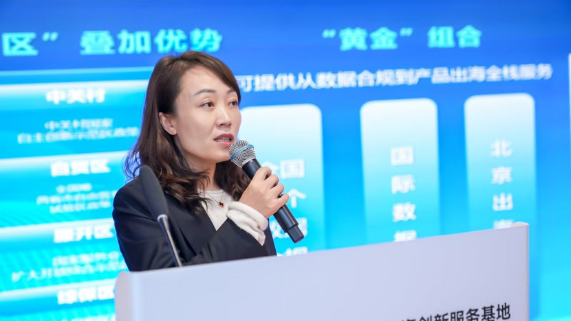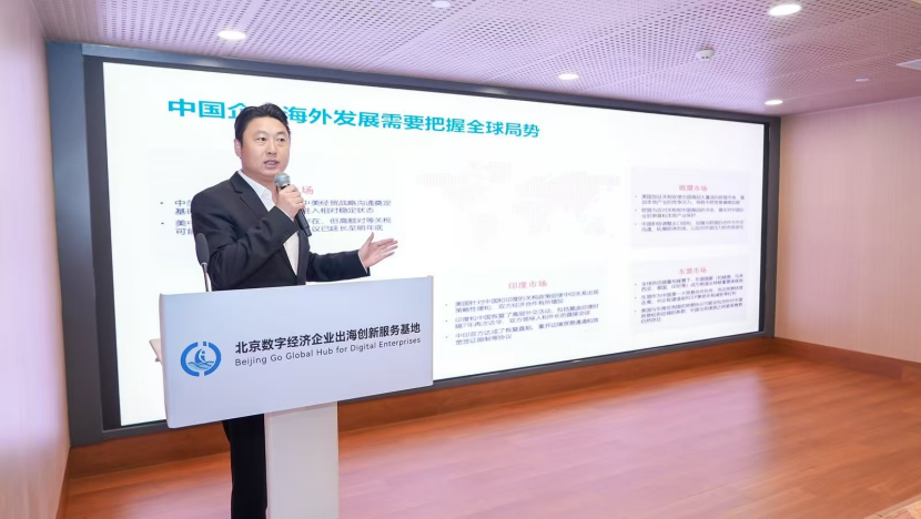 大兴经开区副总经理王艳系统介绍了“北京数字经济企业出海创新服务基地”的建设进展与服务机制,指出基地通过"1+4+8"全链条服务体系,为企业提供政策创新、合规监管、生态服务与海外订单四大平台支持并通过“Go Global”品牌系列活动,为企业打造资源共享、协同发力的出海服务新生态。