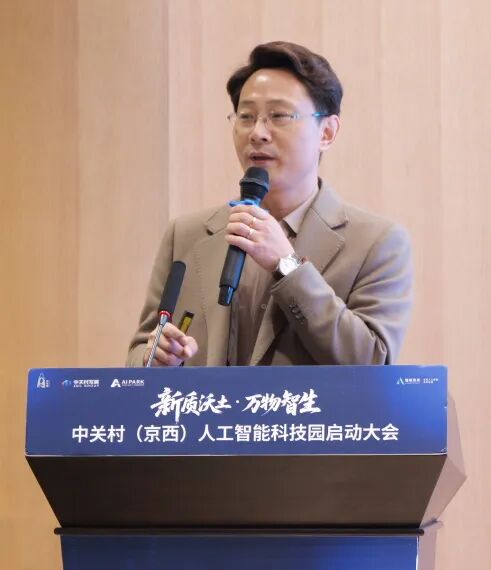 京西公司总经理邓小文在欢迎辞中,对到场嘉宾表示衷心感谢与热烈欢迎。他着重展望了京西AI园的使命,强调园区将充分发挥其链接与赋能作用,积极促进“政产学研金”各方力量的深度协同与创新共振,共同塑造人工智能产业繁荣发展的新格局。
